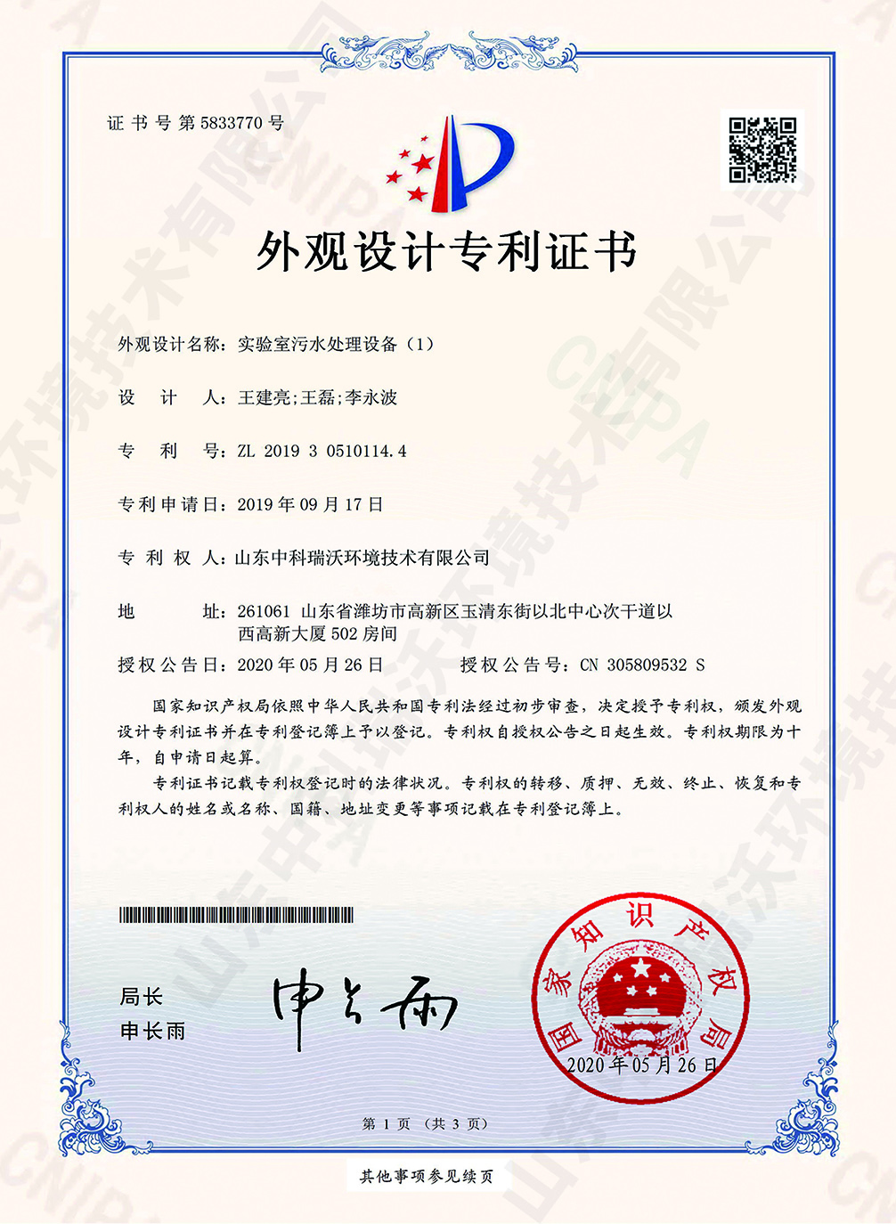 實驗室污水處理設備~外觀專利